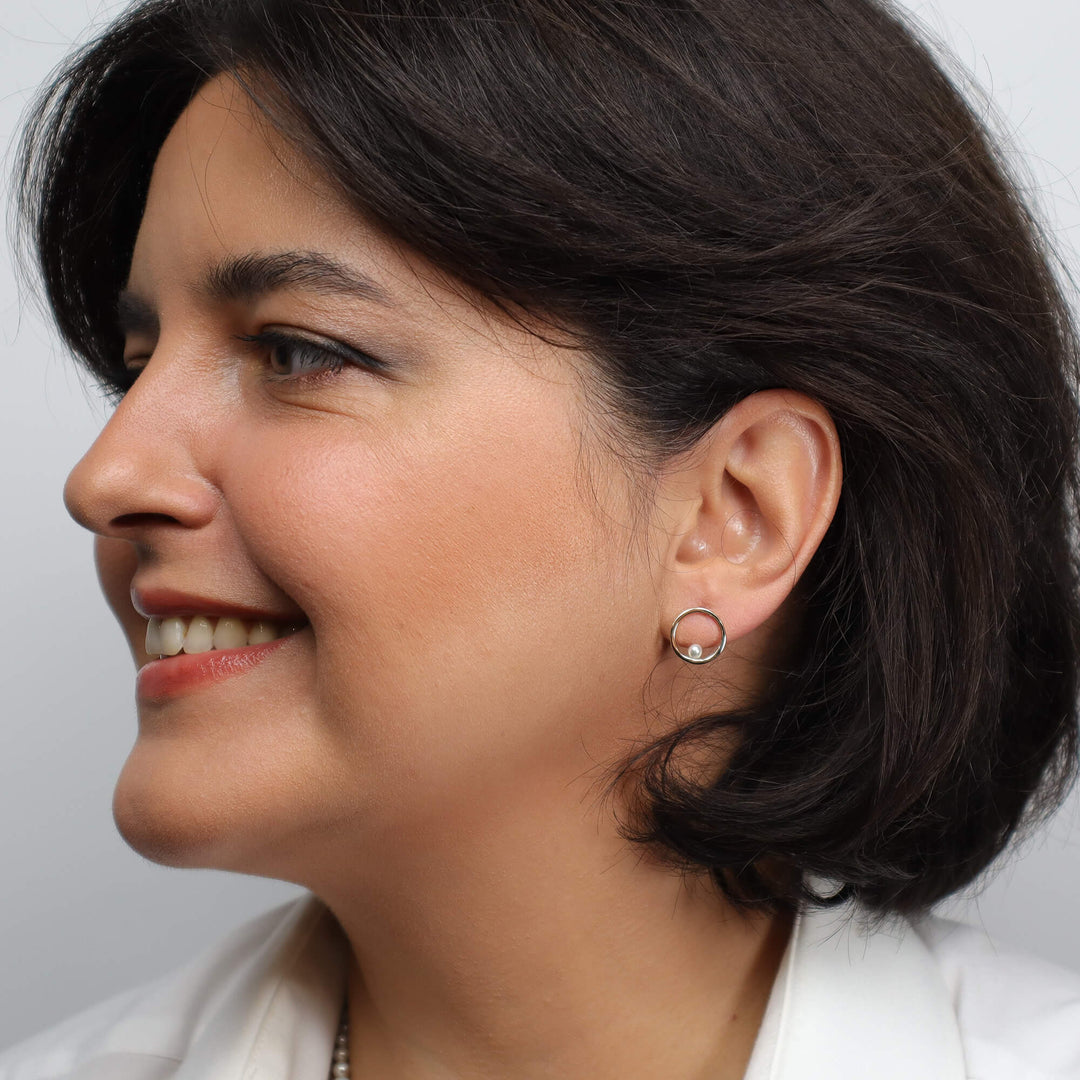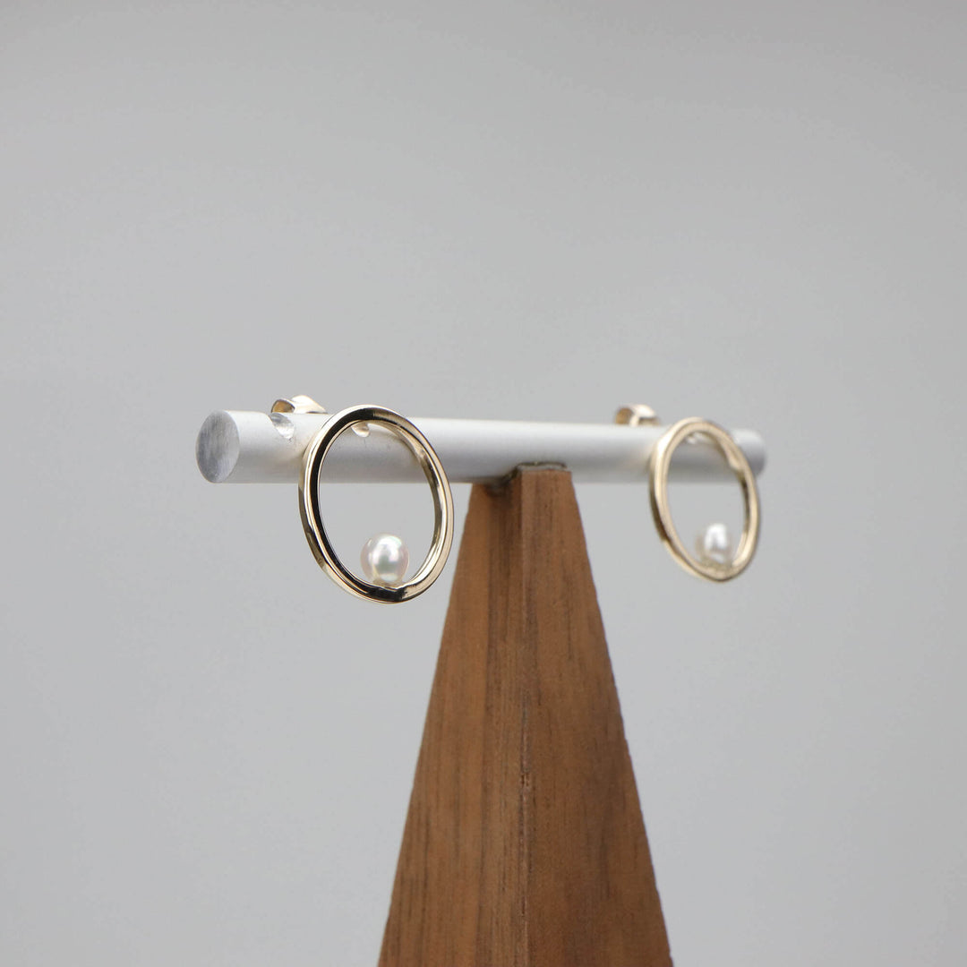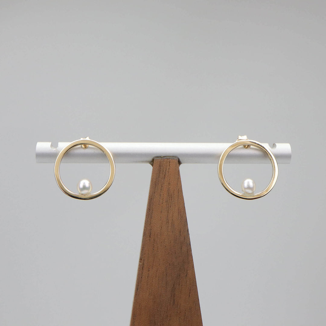 Încântă-ți simțurile cu cerceii rotunzi Cyclical Pearl din aur de 14k, împodobiți cu perle delicate. O combinație sublimă între eleganță clasică și rafinament modern.