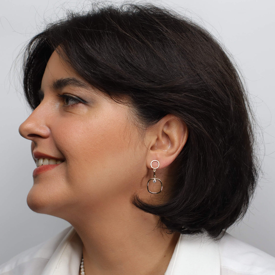 Cerceii Long Squircle sunt bijuterii excepționale, realizate din aur de 14k, conturând o formă unică de Squircle și încrustați cu Zirconii strălucitoare. Eleganța lor modernă și strălucirea discretă transformă orice apariție într-o oază de rafinament și stil.