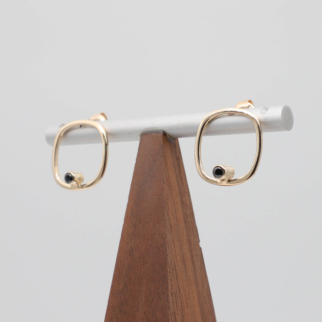 Îmbrățișează misterul cu cerceii squircle din aur de 14k, împodobiți cu diamante negre deosebite. Accesorii sofisticate ce adaugă o notă de eleganță fiecărei ținute.