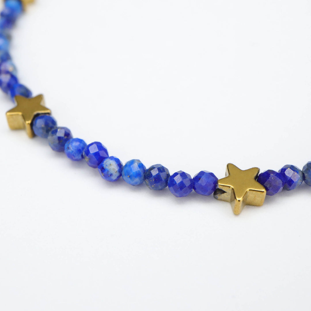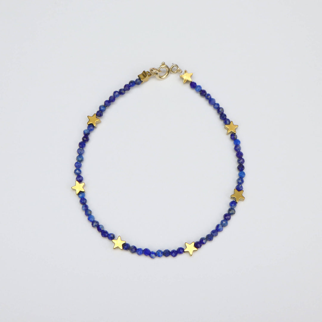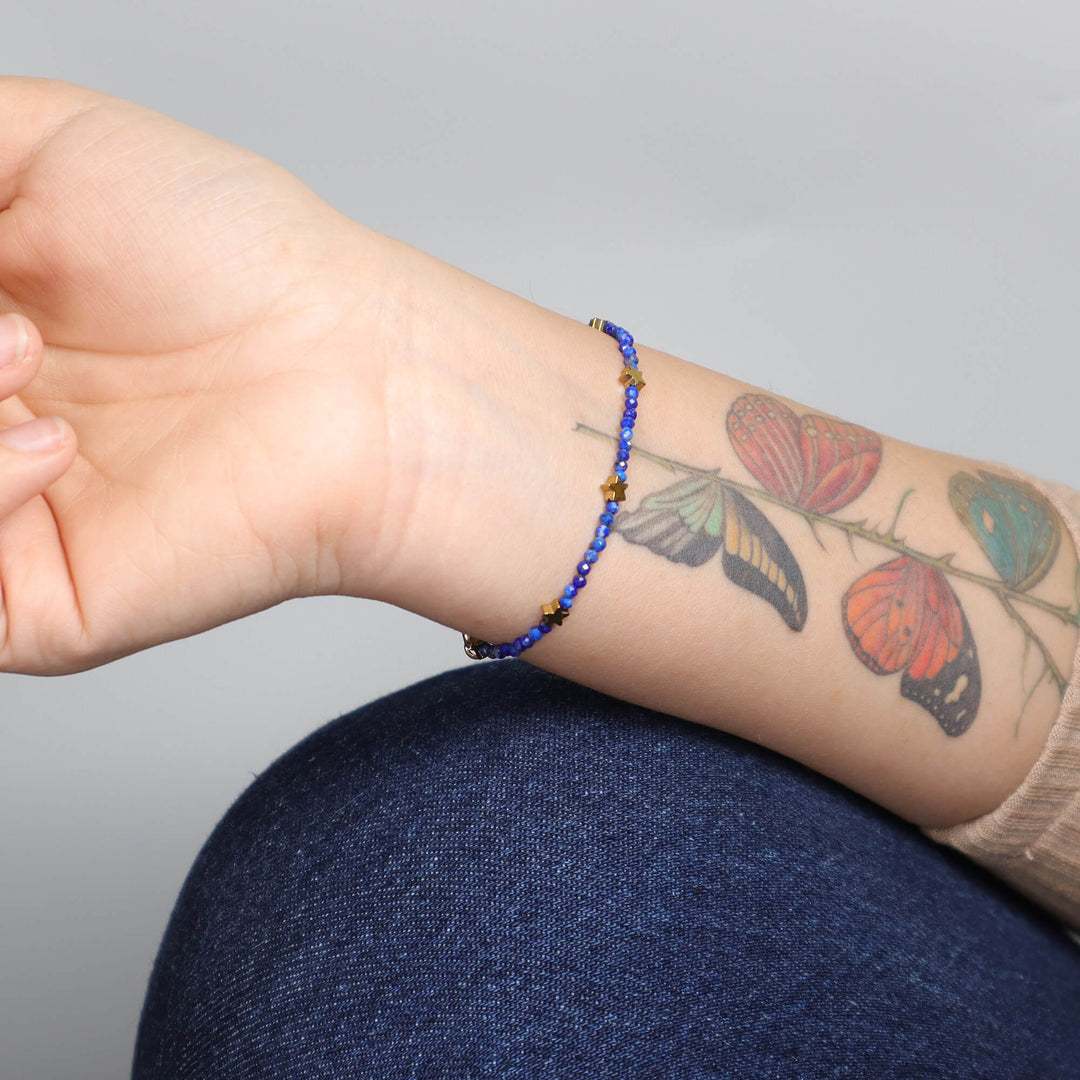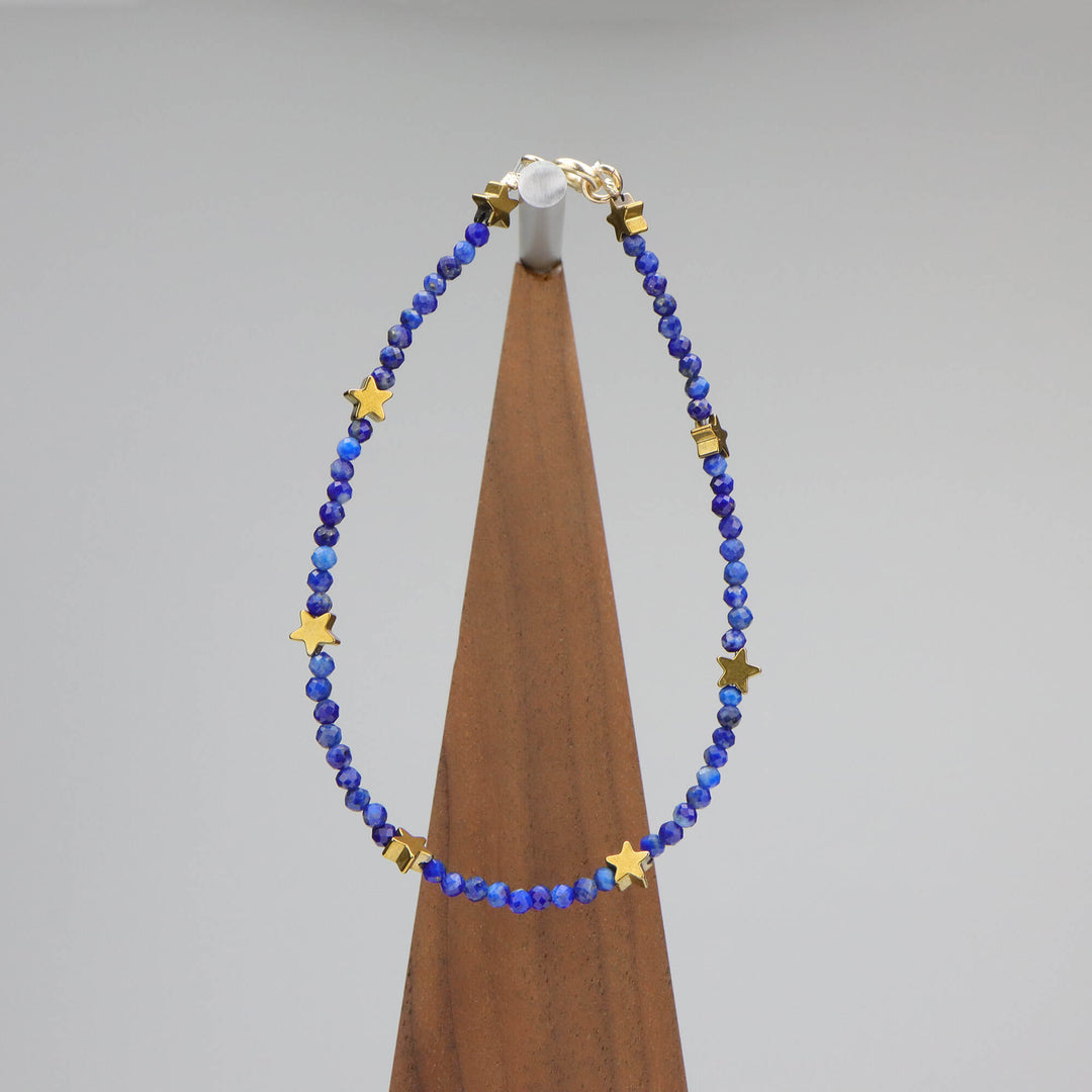 Brățară cu mix de pietre naturale - lapis lazuli și hematit, cu elemente din aur galben de 14k.