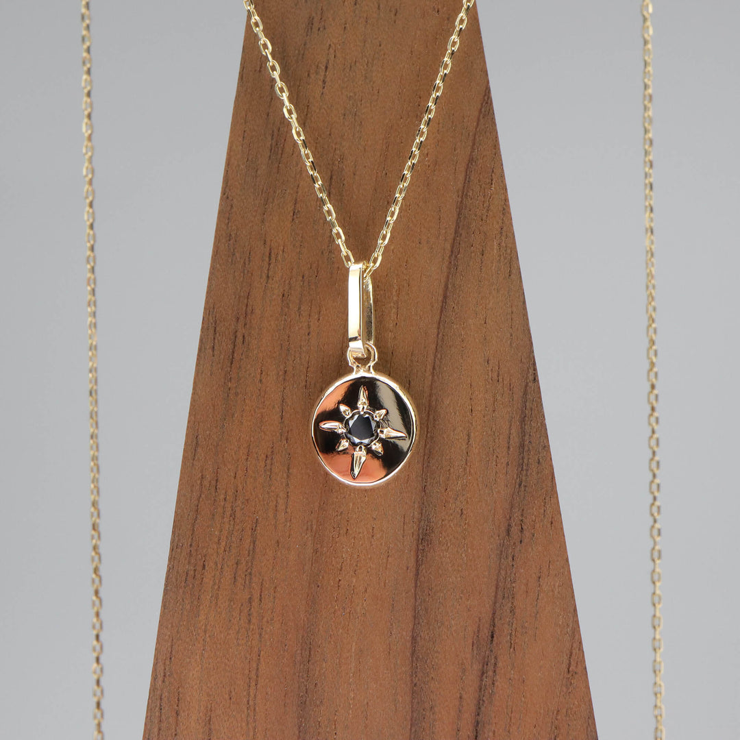 Descoperă eleganța pură cu pandantivul din aur de 14K Pebble Diamond Sparkle, în forma unui pebble unic mereu unpic diferit, datorită procesului de producție, accentuat de un diamant negru de 0.07ct montat prin gravură manuală in formă de stea. O bijuterie excepțională ce îmbină rafinamentul și strălucirea subtilă.