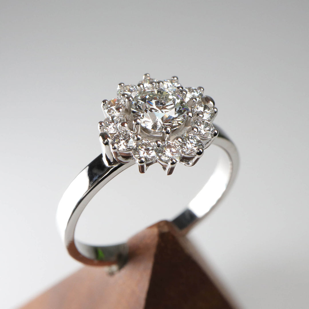 - Anturaj de 12 diamante lab grown de 2 mm, cu tăietură VG, culoare F, claritate VS2, 0.192 carate