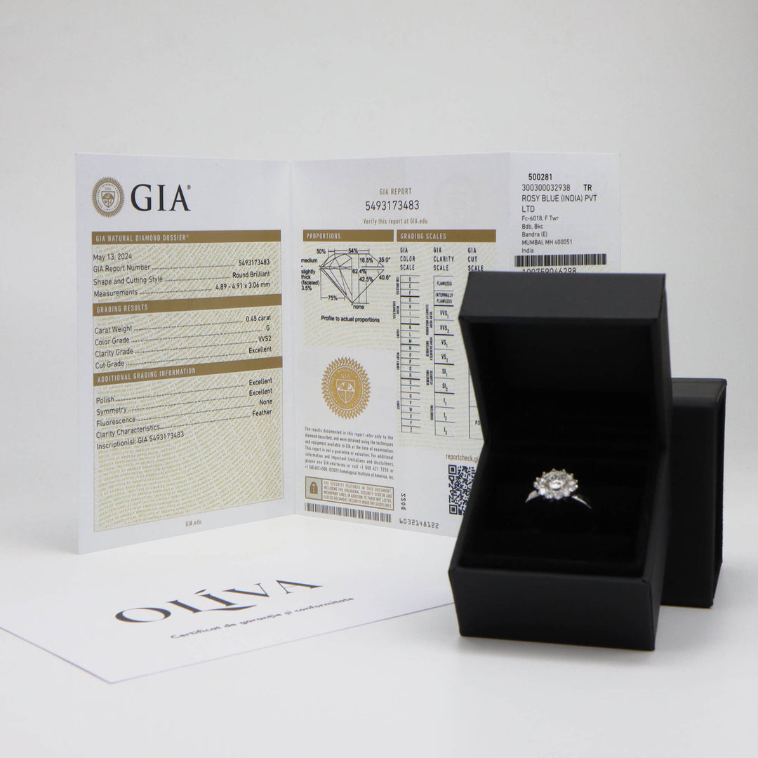 - Diamant central lab grown de 5mm Brilliant Cut Certificat GIA, 0.45 carate, Cut: Excellent, Culoare: G, VVS2.